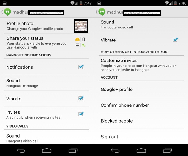 Google Hangout – Your Account Profile