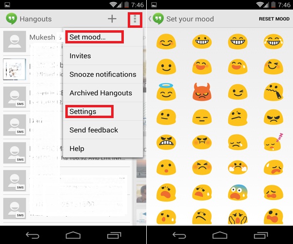 Google Hangout Settings – Set your mood (status)